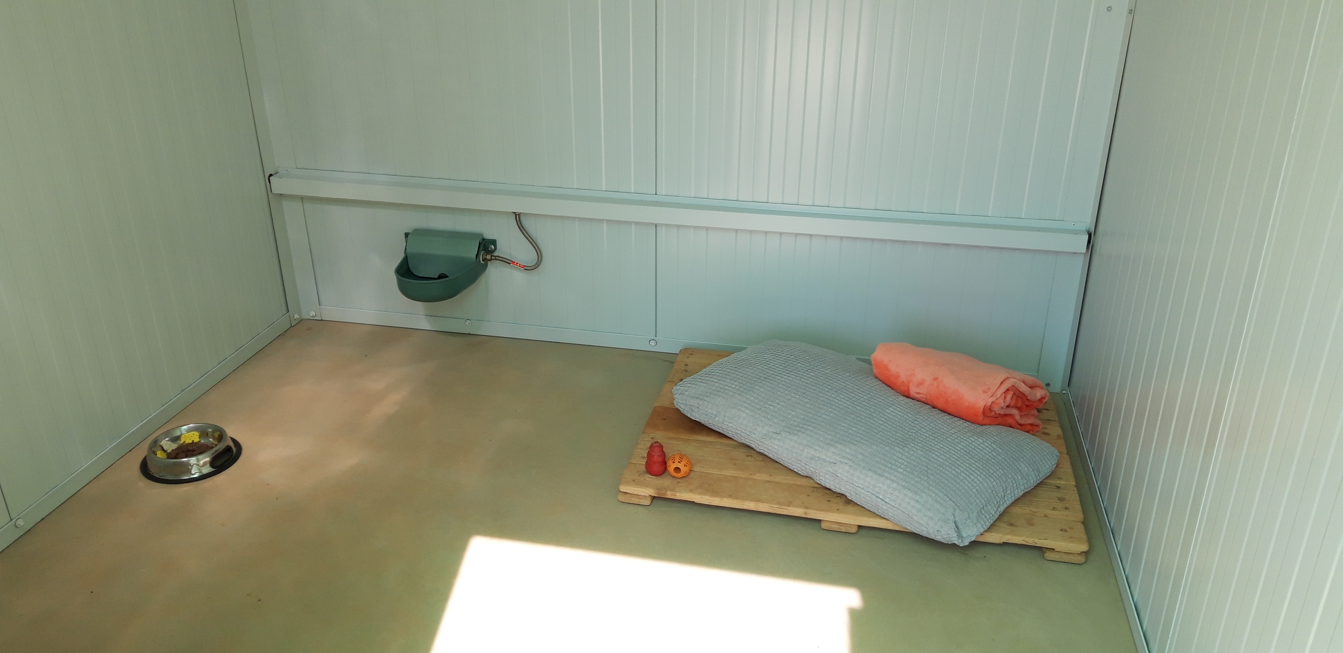 Las habitaciones poseen bebederos automáticos y camas para descanso. El alimento está incluido en el precio. La limpieza y desinfección se realiza diariamente de manera exhaustiva.